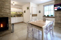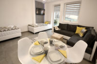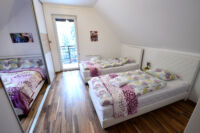 It is fully equipped and has a kitchenette (including dish-washer, cooktop, fridge and microwave). The living room part has a TV and well functioning wi-fi. At our guests disposal are corner sofa bed, one double and two single beds.