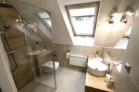 It wll give you a relaxing space where you will recharge your batteries. The house provides an excellent base for hiking, long bike rides or winter holidays in the mountains. Our guests are offered access to a single family house for 6-8 people – including three double rooms, bathroom and two toilets. Living space has a comfortable double sofa bed and a lovely fireplace. Kitchen is well equiped and has a large dinning table. Fantastic views from all off the bedrooms. Outside of the house there is a terrace with deckchairs and a table, barbeque and space for a bonfire. We offer complimentary access to four parking places and free Internet.